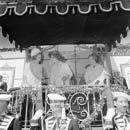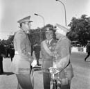 El Caudillo y los Príncipes de España en al Desfile de la Victoria. D. Alfonso de Borbón y el Rey Simeón de Bulgaria en la tribuna.