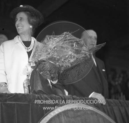 El Caudillo y los Príncipes de España presidiendo la XI demostración sindical en el Estadio Santiago Bernabéu. D. Juan Carlos, Dª Sofía y D Alfonso juntos.