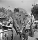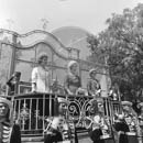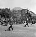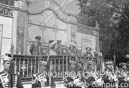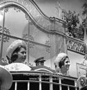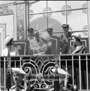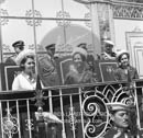 XXVI Desfile de la Victoria, preside El Caudillo con el Príncipe Juan Carlos y el Príncipe Muley Abdullah, hermano del Rey de Marruecos. En la tribuna Dª Carmen con la Princesa Sofía y el Rey Simeón de Bulgaria con el Duque de Cádiz.