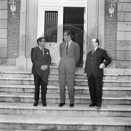 El Príncipe D. Juan Carlos recibe al Profesor D. Agustín Pedro Pons y al Doctor Flórez Tascón en el Palacio de La Zarzuela