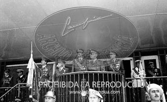 El Caudillo y el Príncipe D. Juan Carlos presiden el XXXI Desfile de la Victoria.
