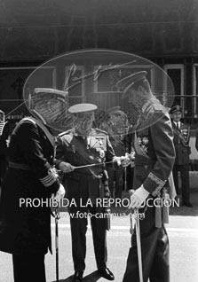 El Caudillo y el Príncipe D. Juan Carlos presiden el XXXI Desfile de la Victoria.