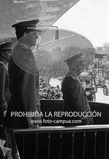 El Caudillo y el Príncipe D. Juan Carlos presiden el XXXI Desfile de la Victoria.