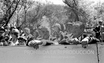 El Caudillo y el Príncipe D. Juan Carlos presiden el XXXI Desfile de la Victoria.
