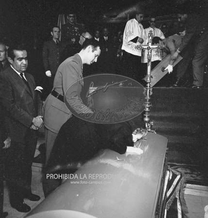 El Príncipe D. Juan Carlos en el entierro del Capitán General Muñoz Grandes.