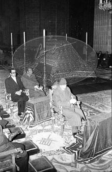 Funerales por S.M. D. Alfonso XIII. Preside el Caudillo y el Príncipe de España, asiste el Gobierno en pleno, Cuerpo Diplomático y Altas Autoridades de la nación.