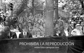 XXVIII Desfile de la Victoria presidido por el Caudillo y el Príncipe de España. El Príncipe con López Bravo.
