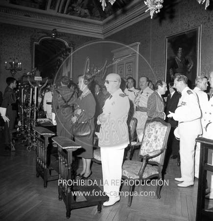El Caudillo y el Príncipe de España asisten al funeral de corpore insepulto del Gral. D. Camilo Alonso Vega.