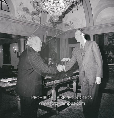 El Príncipe D. Juan Carlos recibe al doctor Antonio Puigvert y al Doctor Flórez Tascón en el Palacio de La Zarzuela