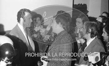 Rueda de prensa del Infante D. Alfonso de Borbón con motivo del nacimiento de su hijo en el sanatorio San Francisco de Asís. Imágenes de los pasillos del hospital, nido , periodistas esperando y visitantes. Brindando con champan, con Jaime Peñafiel.