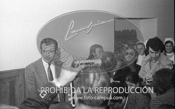 Rueda de prensa del Infante D. Alfonso de Borbón con motivo del nacimiento de su hijo en el sanatorio San Francisco de Asís. Imágenes de los pasillos del hospital, nido , periodistas esperando y visitantes. Brindando con champan, con Jaime Peñafiel.