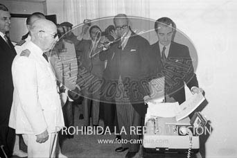 El Príncipe de España, D Juan Carlos acompaña a Franco y al Gobierno en pleno en la inauguración de las nuevas instalaciones del Instituto Nacional de Estadística. Discurso de Carrero Blanco.