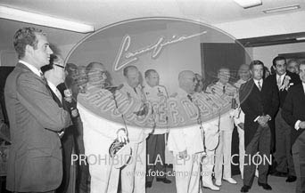El Príncipe de España, D Juan Carlos acompaña a Franco y al Gobierno en pleno en la inauguración de las nuevas instalaciones del Instituto Nacional de Estadística. Discurso de Carrero Blanco.