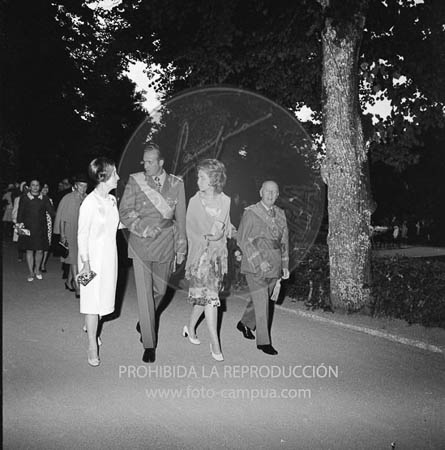 El Caudillo con los Príncipes de España en los jardines de La Granja