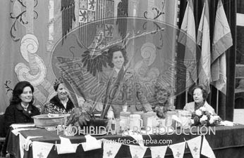 Mesa de cuestación de la Cruz Roja Española, presidiendo la mesa Dª Carmen Polo acompañada de la Princesa de España y otras personalidades