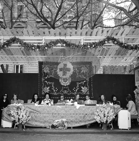 Mesa de cuestación de la Cruz Roja Española, presidiendo la mesa Dª Carmen Polo acompañada de la Princesa de España y otras personalidades