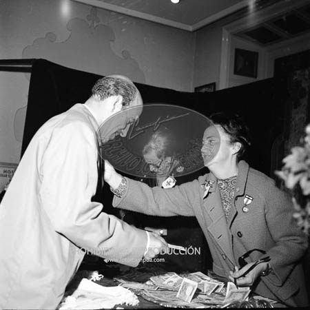 Mesa de cuestación de la Cruz Roja Española, presidiendo la mesa Dª Carmen Polo acompañada de la Princesa de España y otras personalidades