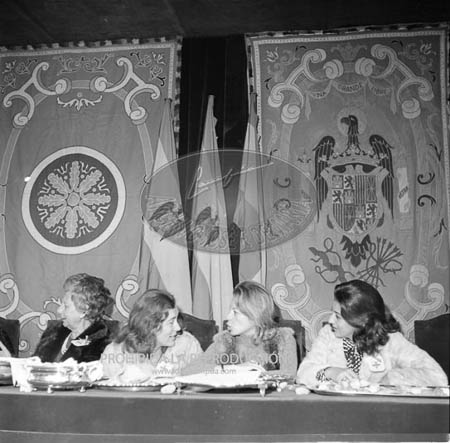 Mesa de cuestación de la Cruz Roja Española, presidiendo la mesa Dª Carmen Polo acompañada de la Princesa de España y otras personalidades