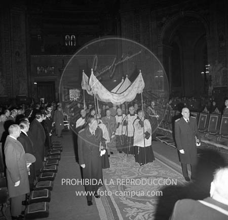 Misa por la Inmaculada en San Francisco El Grande con la asistencia del Caudillo, Dª Carmen, los Príncipes de España, miembros del Gobierno y otras personalidades