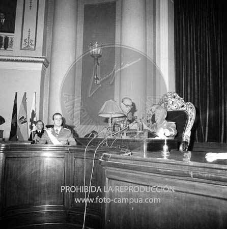 El Príncipe de España con el Caudillo en la inauguración de la cámara del Consejo Nacional del Movimiento.