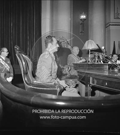 El Príncipe de España con el Caudillo en la inauguración de la cámara del Consejo Nacional del Movimiento.