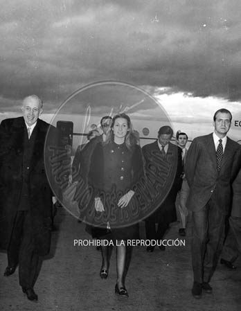 D. Jaime de Borbón, Duque de Segovia, llega a Barajas con motivo de la boda de los Duques de Cádiz. Es recibido por los Principes de España con los Infantes Elena, Cristina y Felipe y por el Dr. Martínez Bordiú
