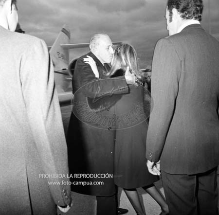 D. Jaime de Borbón, Duque de Segovia, llega a Barajas con motivo de la boda de los Duques de Cádiz. Es recibido por los Principes de España con los Infantes Elena, Cristina y Felipe y por el Dr. Martínez Bordiú
