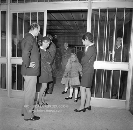 D. Jaime de Borbón, Duque de Segovia, llega a Barajas con motivo de la boda de los Duques de Cádiz. Es recibido por los Principes de España con los Infantes Elena, Cristina y Felipe y por el Dr. Martínez Bordiú