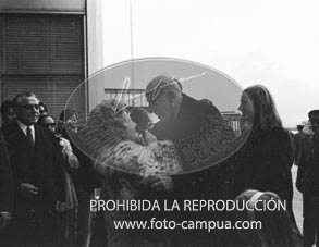 D. Jaime de Borbón, Duque de Segovia, llega a Barajas con motivo de la boda de los Duques de Cádiz. Es recibido por los Principes de España con los Infantes Elena, Cristina y Felipe y por el Dr. Martínez Bordiú