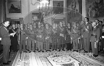 El Príncipe D. Juan Carlos acompaña al Caudillo en la recepción con motivo de la Pascua Militar