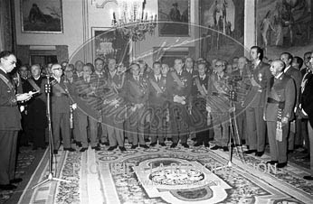 El Príncipe D. Juan Carlos acompaña al Caudillo en la recepción con motivo de la Pascua Militar