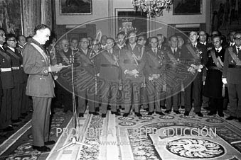 El Príncipe D. Juan Carlos acompaña al Caudillo en la recepción con motivo de la Pascua Militar