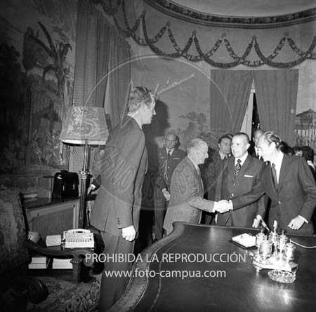 El Príncipe de España D. Juan Carlos, firma por primera vez como Jefe del Estado, por enfermedad del Caudillo, con motivo de la firma del convenio con EE.UU.