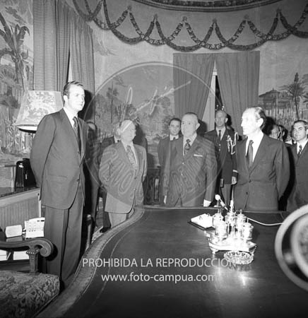 El Príncipe de España D. Juan Carlos, firma por primera vez como Jefe del Estado, por enfermedad del Caudillo, con motivo de la firma del convenio con EE.UU.