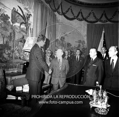 El Príncipe de España D. Juan Carlos, firma por primera vez como Jefe del Estado, por enfermedad del Caudillo, con motivo de la firma del convenio con EE.UU.