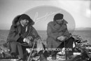 Víctor de la Serna, Infante de Baviera y García Sanchíz visitan el frente de Teruel, grupo alrededor de una hoguera con el General Aranda