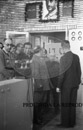Franco inaugura el edificio de la radio EAJ 101. Tebit escribiendo en la escalera.
