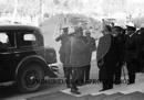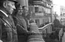 Franco en el edificio de la radio EAJ 101, su guardia mora, manifestación. Serrano Suñer, Foto de Franco en tribuna con el escudo de España Una, Grande y Libre.