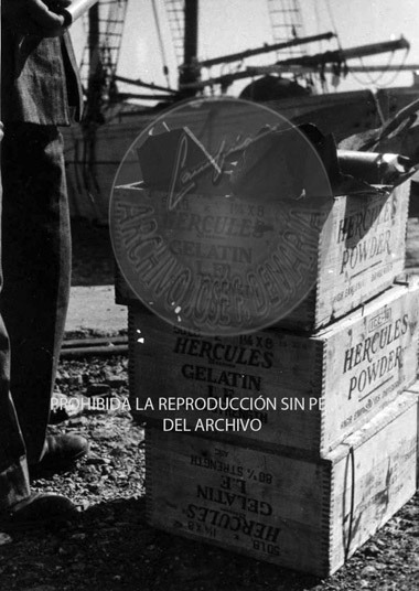 El puerto de Castellón tras la entrada de los nacionales. Camiones cargadois de dinamita para explotar.