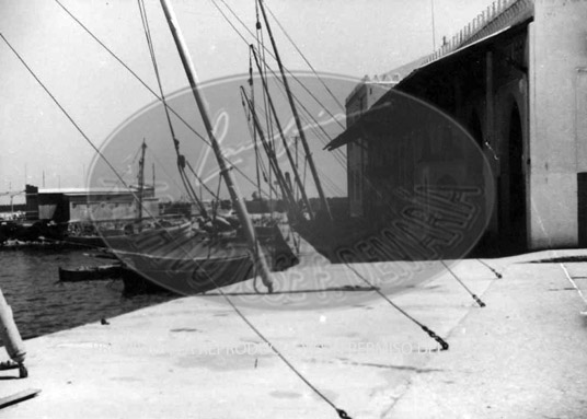 El puerto de Castellón tras la entrada de los nacionales. Camiones cargadois de dinamita para explotar.
