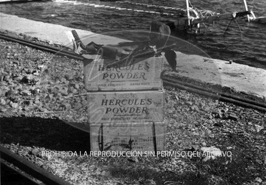 El puerto de Castellón tras la entrada de los nacionales. Camiones cargadois de dinamita para explotar.