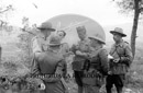 Franco en los parapetos (puesto de mando de la batalla del Ebro) comiendo en el campo con Kindelán.