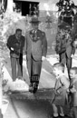 Queipo visita las "casas baratas" con Fernández Cuesta y el Tebit Arrumi. Retratos de Queipo a contra luz en una ventana y retratos sentado (de paisano)