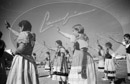 Exhibición de la Sección Femenina. Pilar Primo de Rivera. Tebit y colaboradores en la mesa de un bar. General Cuesta Moreneu. Vistas exteriores de Los reales Alcázares. Bailes típicos.