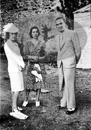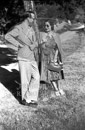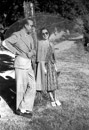 Preparativos para la primera fiesta de La Granja (Segovia), en plena guerra fue la primera fiesta que se celebró. Conchita Piquer posa para Campúa y pasea por los jardines junto a Fernando Fuertes de Villavicencio.