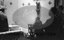Consejo de ministros realizado en el frente. Franco rezando en altar de campaña.