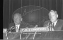 Los astronautas Armstrong, Aldring y Collins imparten una conferencia en el auditorio del Ministerio de Información y Turismo en diciembre de 1969