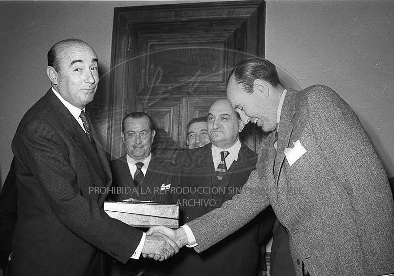 El Ministro Manuel Arburua de la Miyar recibe la Gran Cruz de Cisneros 9/3/1956