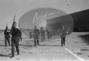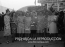 El General Millán Astray y otras autoridades eclesiasticas, civiles y militares esperando a Franco a su llegada a Barajas