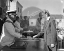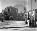 Franco inaugura un grupo de viviendas en Canillejas, junto con el Ministro de Justicia, Sr. Fernández Cuesta y el alcalde de la localidad Sr. Serrano Caballero. El Obispo Conciliar, Sr. Morcillo, bendice las viviendas